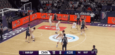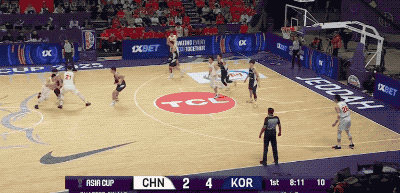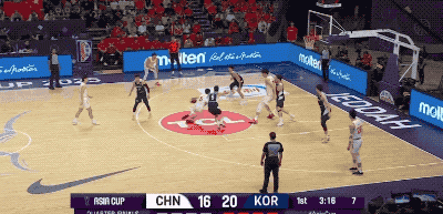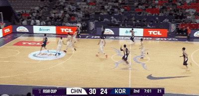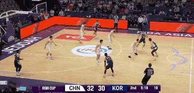 不过,韩国队并不是一上来就那么铁。反而他们比我们进入状态更早,甚至可以用手感滚烫来形容。第一节的大部分时间,韩国队都是比分领先的一方。而造成对手压制我们的原因无非是,开场连续两记顶着防守命中的三分,把我们惊出一身冷汗。
